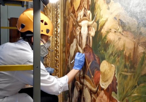 Agora, uma equipe de nove profissionais, sob o comando da especialista em restauro do Museu do Ipiranga Yara Petrella, trabalha no reparo da obra. Com o tempo, a pintura sofreu desgaste, acúmulo de sujeira e alteração de cor por intervenções passadas.